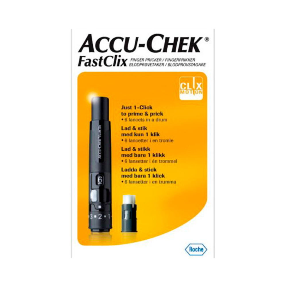 Reduce the pain and hassle of blood glucose testing. The Accu-Chek FastClix lancing device is the only 1-click lancing device with a drum of 6 preloaded lancets. Minimal side-to-side motion means less skin tearing and 11 depth settings ensure maximum comfort. Includes 1 preloaded drums of 6 lancets per drum