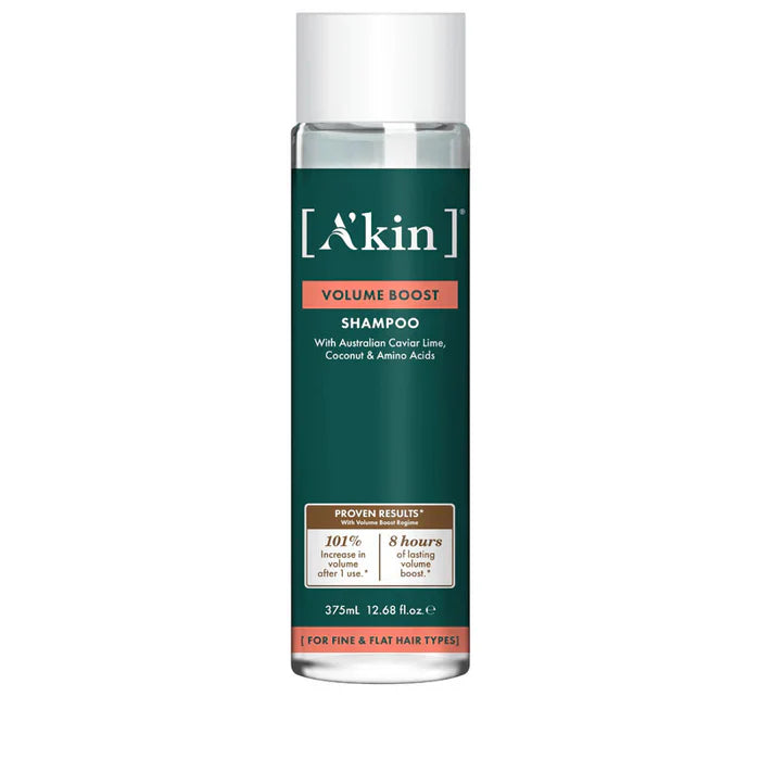 Boost fine & flat hair with the A'kin Volume Boost Shampoo. Formulated with Australian Caviar Lime, Coconut & Amino Acids, this vegan-friendly shampoo gently cleanses hair without weighing it down for maximum body, fullness and bounce. Featuring a soft floral & coconut fragrance, this sulphate-free shampoo has been proven to increase volume by 101% after just 1 use.