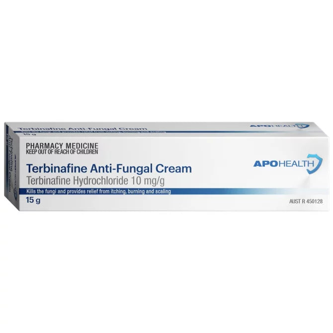 Apo-Terbinafine Anti-Fungal Cream is an effective treatment for fungal skin infections. This cream provides relief from the itching, burning, cracking, and scaling associated with athlete's foot (tinea pedis), jock itch (tinea cruris), and ringworm (tinea corporis). The active ingredient, terbinafine hydrochloride, works by killing the fungi causing the infection. This cream is intended for adults and children over 12 years of age.