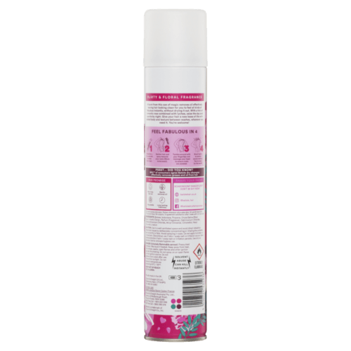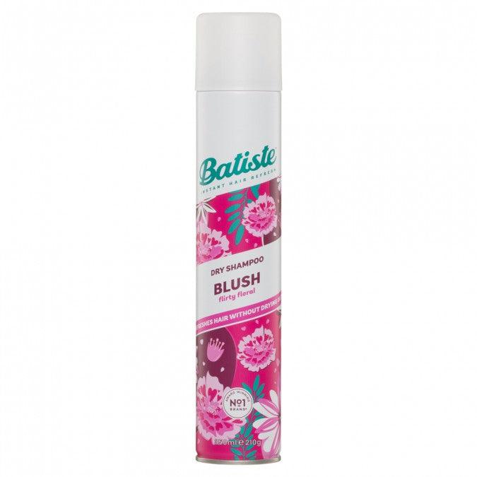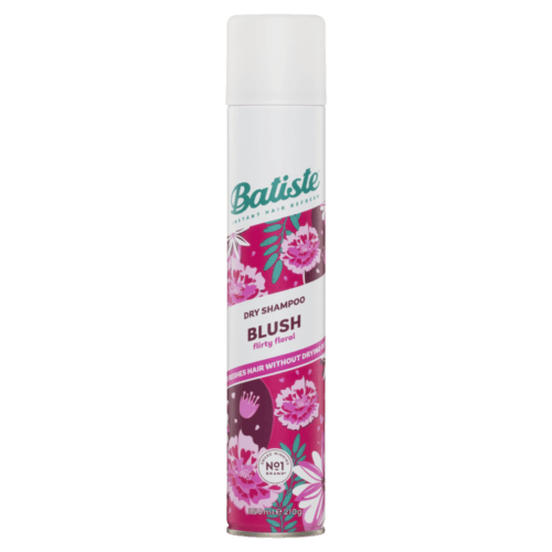 Batiste Blush dry shampoo with a flirty floral fragrance refreshes hair without drying out.