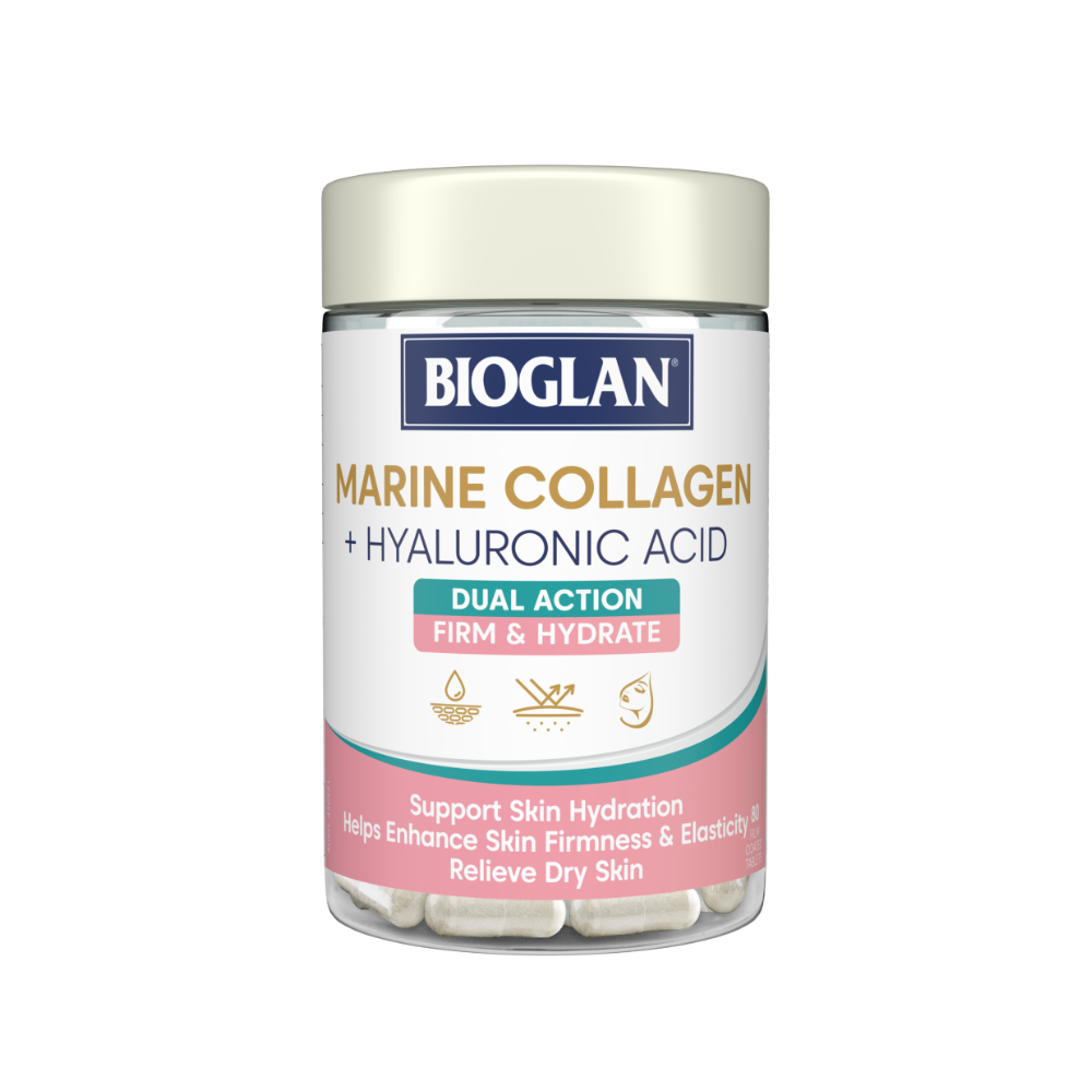 Achieve a glowing complexion with Bioglan Marine Collagen + Hyaluronic Acid, the perfect partner in your skincare journey!
