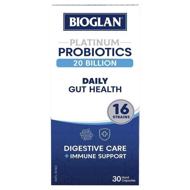 BIOGLAN Platinum Probiotics 20 Billion is a specially formulated high strain count probiotic supplement containing 16 beneficial probiotic strains to support healthy digestion & a healthy immune system.