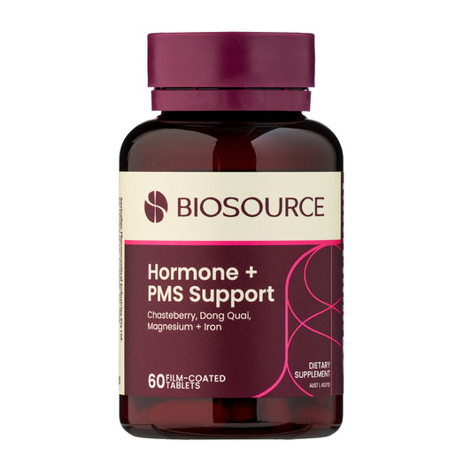 BIOSOURCE Hormone + PMS Support is specifically formulated for women, combining herbal extracts, iron and magnesium to support healthy reproductive hormones, relieve symptoms of PMS and reduce cycle irregularity.