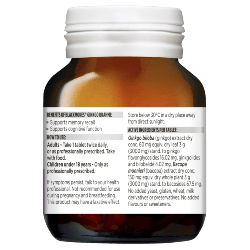 Blackmores Ginkgo Brahmi combines two ingredients to support memory.