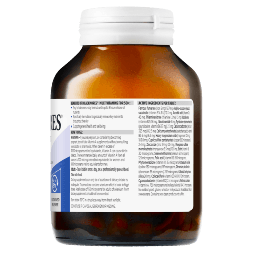 Blackmores® Multivitamins for 50+ with Sustained Release Technology provides a steady release of nutrients to give you lasting energy for up to 8-hours a day.