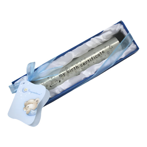 Blue Baby Boy My Birth Certificate Holder in Satin Gift Box