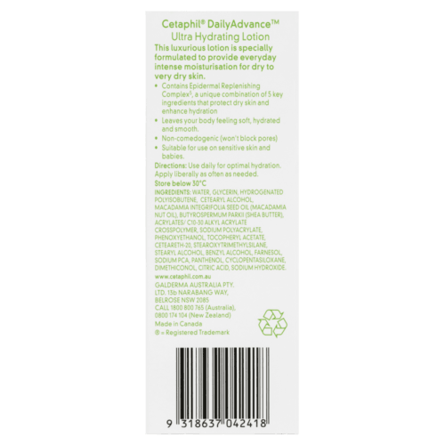 Cetaphil® Daily Advance™ Ultra Hydrating Lotion is specially formulated to provide intense everyday