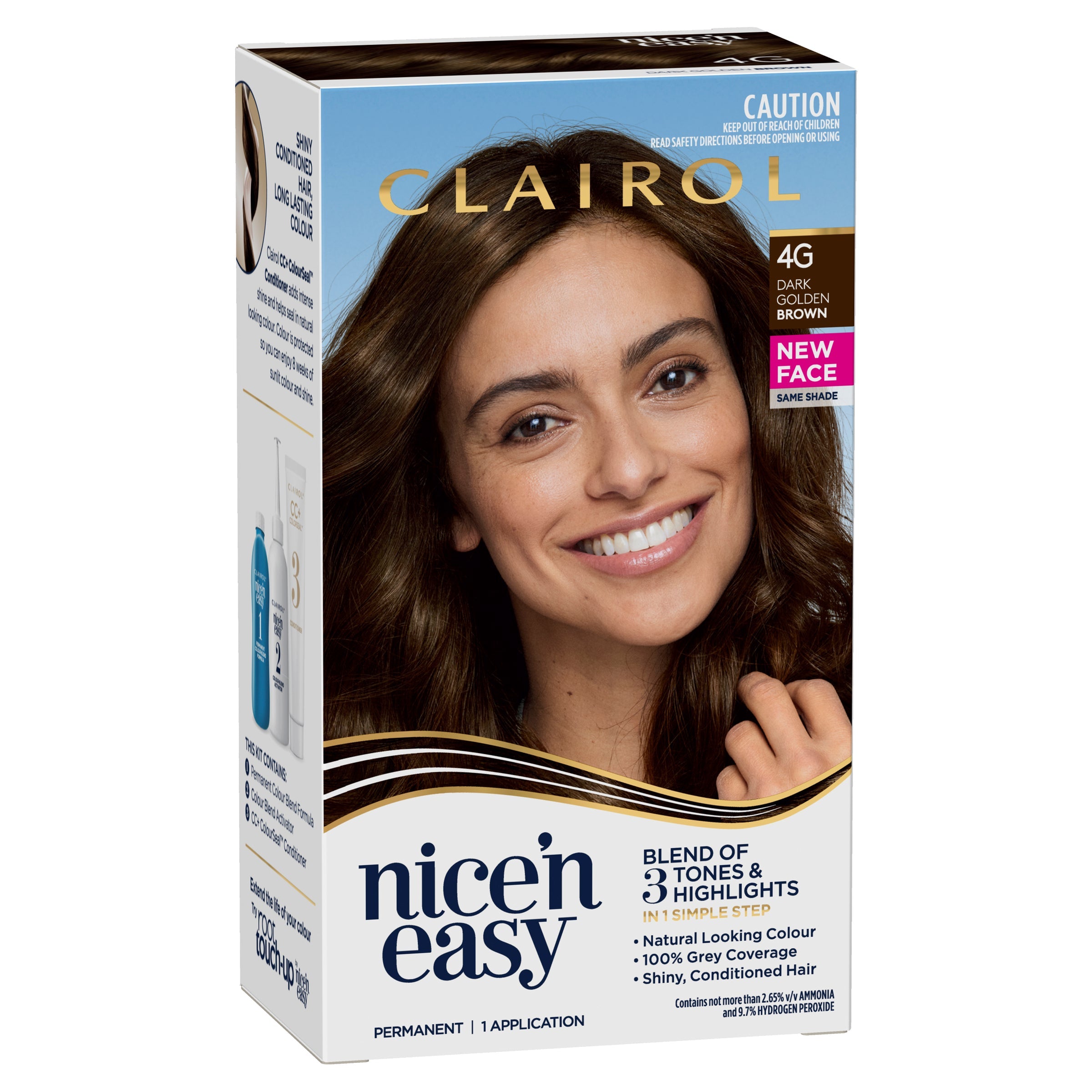 Ingredients: Aqua/Water/Eau, Ethoxydiglycol, Propylene Glycol, Isopropyl Alcohol, Soytrimonium Chloride, Oleth-5, Trisodium Ethylenediamine Disuccinate, Tall Oil Acid, Ammonia, Oleth-2, Parfum/Fragrance, C11-15 Pareth-9, Cocamidopropyl Betaine, p-Aminophenol, p-Phenylenediamine, C12-15 Pareth-3, Resorcinol, Citric Acid, Erythorbic Acid, 2-Methylresorcinol, N,N-Bis(2-Hydroxyethyll-p-Phenylenediamine Sulfate, 4-Amino-2-Hydroxytoluene, 1-Naphthol, Phenyl Methyl Pyrazolone, Sodium Sulfite, m-Aminophenol, Limonene, EDTA, Linalool, Citronellol, BHT, 1-Hydroxyethyl 4,5-Diamino Pyrazole Sulfate. Easy Nice 'N Easy colour blend technology gives you ultimate natural-looking colour by layering rich tones and contouring highlights in one simple step.