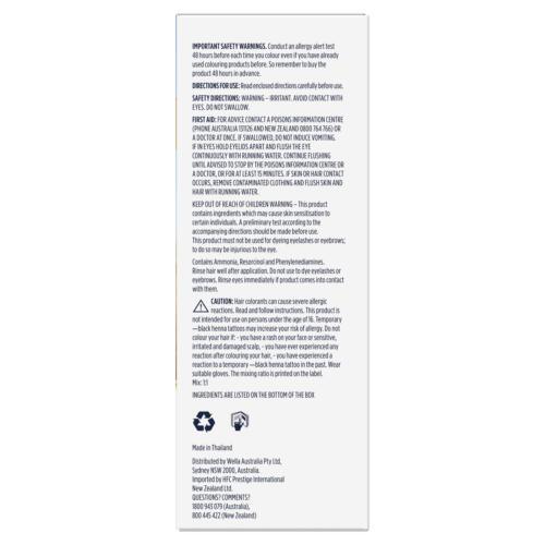 Ingredients: COLOUR-BLEND FORMULA: Aqua/Water/Eau, Ethoxydiglycol, Propylene Glycol, Isopropyl Alcohol, Soytrimonium Chloride, Oleth-5, Trisodium Ethylenediamine Disuccinate, Tall Oil Acid, Ammonia, Oleth-2, Parfum/Fragrance, C11-15 Pareth-9, Cocamidopropyl Betaine, p-Aminophenol, p-Phenylenediamine, C12-15 Pareth-3, Resorcinol, Citric Acid, Erythorbic Acid, 2-Methylresorcinol, N,N-Bis(2-Hydroxyethyll-p-Phenylenediamine Sulfate, 4-Amino-2-Hydroxytoluene, 1-Naphthol, Phenyl Methyl Pyrazolone, Sodium Sulfite, m-Aminophenol, Limonene, EDTA, Linalool, Citronellol, BHT, 1-Hydroxyethyl 4,5-Diamino Pyrazole Sulfate. COLOUR-BLEND ACTIVATOR: Aqua/Water/Eau, Hydrogen Peroxide, Acrylates Copolymer, Steareth-21, Oleth-2, PEG-50 Hydrogenated Palmamide, Acrylates/Steareth-20 Methacrylate Copolymer, Oleyl Alcohol, Etidronic Acid, Disodium EDTA, Simethicone, Sorbitan Stearate, PEG-40 Stearate, Magnesium Chloride, Magnesium Nitrate, Potassium Sorbate, Cellulose Gum, Methylchloroisothiazolinone, Methylisothiazolinone, Sorbic Acid. CC+ COLOURSEAL CONDITIONER: Aqua/Water/Eau, Bis-Hydroxy/Methoxy Amodimethicone, Stearyl Alcohol, Cetyl Alcohol, Stearamidopropyl Dimethylamine, Malic Acid, Glutamic Acid, Parfum/Fragrance, Benzyl Alcohol, Benzyl Benzoate, EDTA, Histidine, Cocos Nucifera (Coconut) Oil, Sodium Chloride, Hexyl Cinnamal, Linalool, Magnesium Nitrate, Trimethylsiloxysilicate, Aloe Barbadensis Leaf Juice, Methylchloroisothiazolinone, Magnesium Chloride, Methylisothiazolinone, BHT, Ascorbic Acid, Citric Acid, Potassium Sorbate, Sodium Benzoate, Sodium Sulfite. Contains: Contains not more than 2.65% v/v Ammonia and 9.7% v/v Hydrogen Peroxide. Contains Ammonia, Hydrogen Peroxide, Resorcinol and Phenylenediamines.