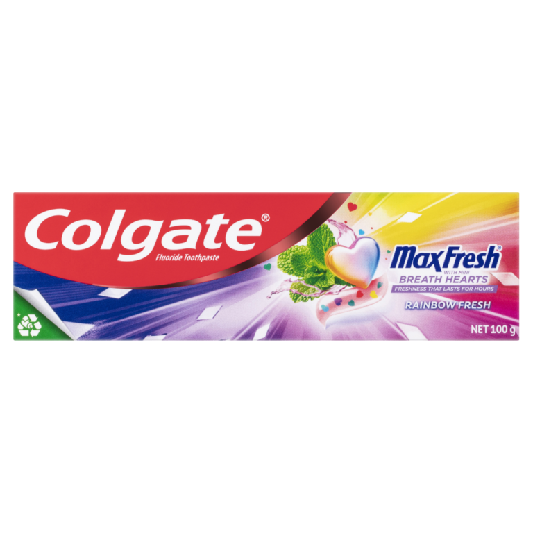 Experience a new dimension of freshness with Colgate Max Fresh Rainbow Gel Toothpaste. This unique formula is packed with hundreds of mini breath strips that dissolve as you brush, releasing an intense burst of coolness for long-lasting fresh breath. In addition to its powerful freshening capabilities, this toothpaste actively fights cavities and helps whiten teeth, so you can smile with confidence.