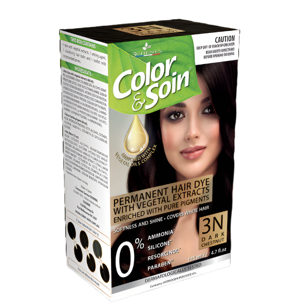 Color & Soin is enriched with a unique oil-protein complex that helps preserve the natural keratin and oils in your hair, leaving it supple, shiny, and soft. This high-performance formula provides complete grey coverage from the first application, and is resistant to UV and chlorine. Suitable for women with sensitive skin.