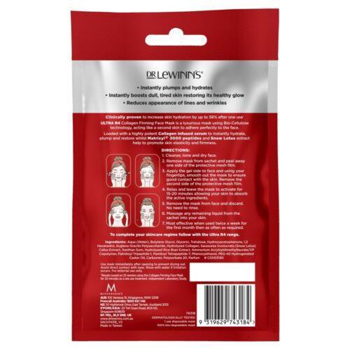 Ultra R4 Collagen Firming Face Mask is a luxurious mask using Bio-Cellulose technology, which acts like a second skin to adhere perfectly to the face and delivers an instant moisture surge. Loaded with a highly potent Collagen infused serum to instantly hydrate, plump and restore whilst Matrixyl® 3000 Peptide and Orchid Stem Cell Extract help to promote skin elasticity and firmness.