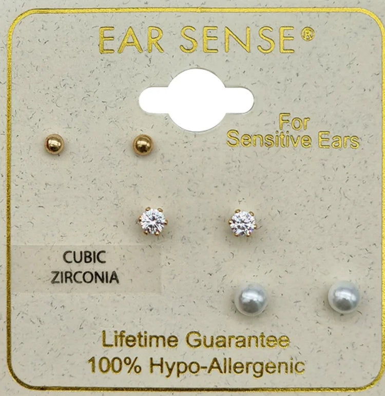 Ear Sense Small Gold Ball CZ & Pearl Trio
