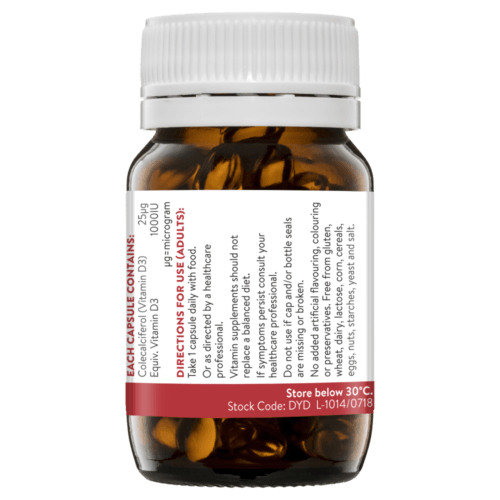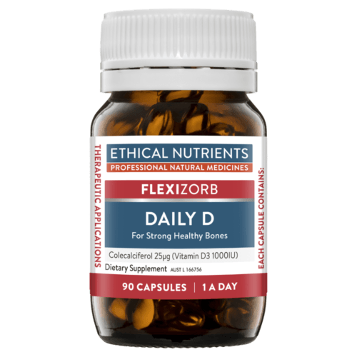 Ethical Nutrients Daily D capsules provide 1000IU (RDI) of vitamin D3 for immune system support & strong, healthy bones.
