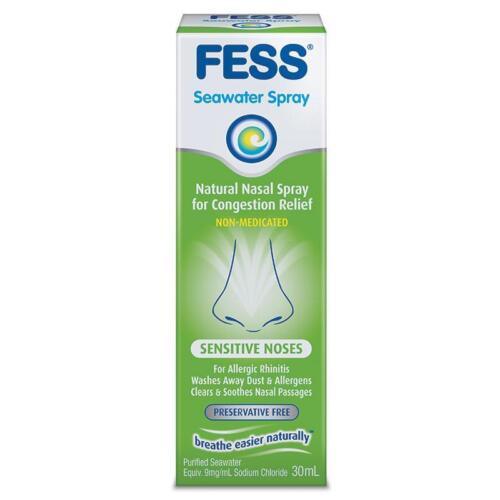 FESS Sensitive Noses is a non-medicated, preservative free nasal spray made from natural seawater that gently washes away excess mucus and allergens such as dust and pollen.