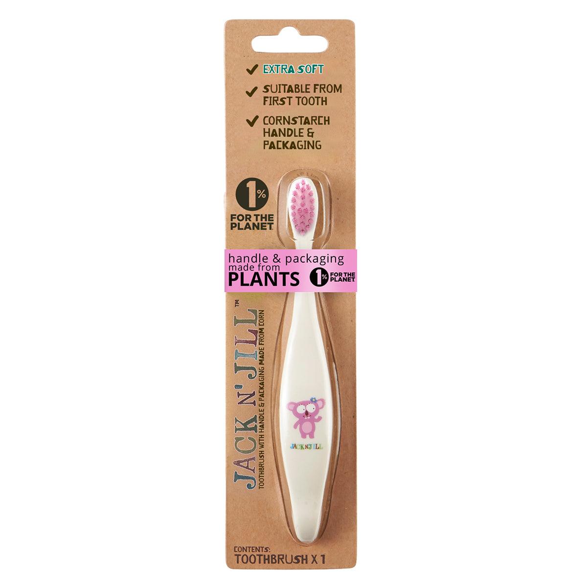 MAKING TOOTHBRUSHING FUN FOR KIDS - Our Jack N’ Jill Koala Bio Kids, Toddler, and Baby Toothbrush is the perfect companion for getting your little one's teeth nice and clean. Don't forget to replace your toothbrush every 6-8 weeks!SUITABLE FROM FIRST TOOTH - With an ergonomic, compostable handle made from 100% Cornstarch, this toothbrush is the perfect option once there's sign of the first tooth. The soft and round nylon bristles provide a full and thorough clean for your kid's mouthZERO WASTE - Our toothbrushes are Biodegradable, Vegan, and GMO-free - even the packaging is biodegradable and made from corn - no plastic!ALL NATURAL & SAFE - At Jack N' Jill, we believe that businesses have an obligation to the environment. That's why we have formulated all natural, hypoallergenic products with organic ingredients, and where possible, designed our packaging to be minimal, recyclable, and BPA Free