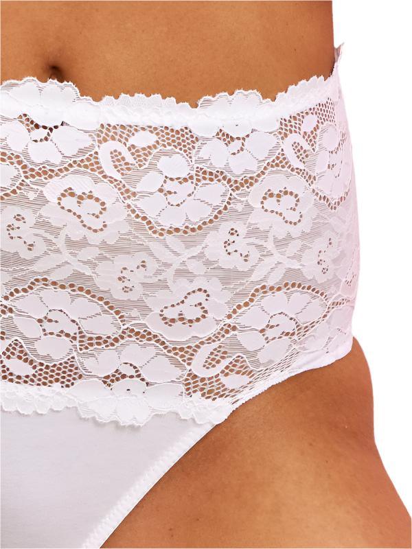 The Kayser Daily Essentials Cotton & Lace Full Briefs in White are the perfect control knickers. Featuring a wide lace band in our classic heritage corded floral lace as well as a cotton body. These full-coverage briefs will provide the ultimate support and comfort for everyday wear. With a scalloped edge and stunning lace panelling, these knickers are fashionable and functional.