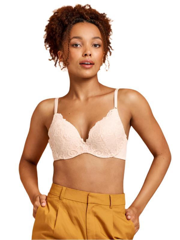 The Be Real Black Lace Push-Up Bra is the perfect everyday push-up bra for when you want a natural boost and a little femininity. With a low plunge neckline, this lace push-up bra creates a flattering cleavage and subtle lift. The hidden wire and built-in foam cups allow for the ultimate comfort and support. Designed with the signature Be Real floral all-over lace.