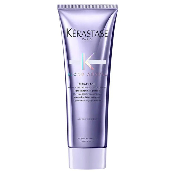 Super shot of care for lightened or highlighted hair with the restorative performance of a masque and the lightweight finish of a conditioner.This opalescent milky gel with a soft lavender hue offers the restorative performance while intensively restoring sensitised hair and nourishing the fibre, preventing breakage. Blond Absolu Cicaflash instantly smooths, strengthens and softens sensitised lightened hair while providing deep nourishment. Ideal for all tones of lightened or highlighted hair.