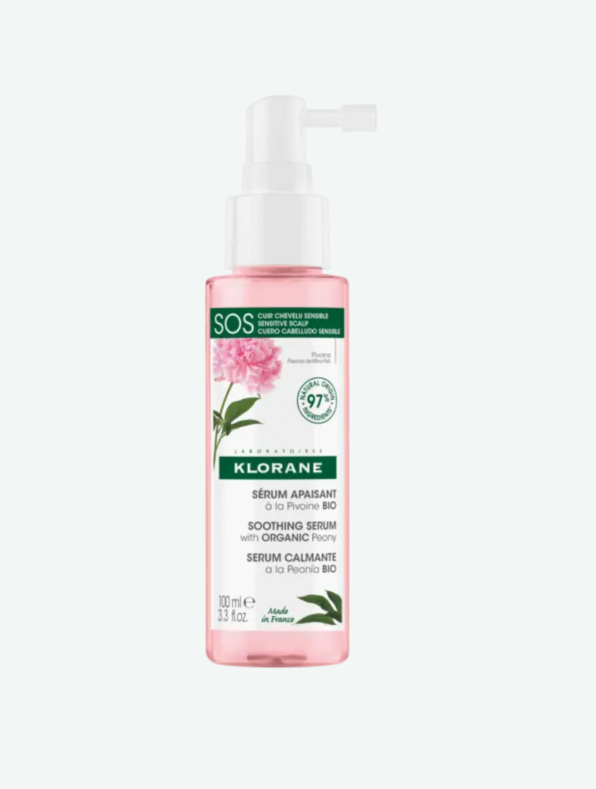 The SOS Serum with Organic Peony provides immediate soothing sensation for sensitive scalp*. Its physiological pH formula restores the scalp’s natural balance.