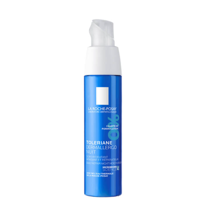 An ultra-soothing overnight face moisturizer formulated for sensitive skin. A minimalist formula created without fragrance, parabens and drying alcohol. This moisturizer includes soothing and hydrating La Roche-Posay Thermal Water, Niacinamide (2%) + Neurosensine and Vitamin B6 to reduce irritations caused by histamine, and Carnosine + Vitamin E as an antioxidant for the skin. Includes Spingobioma for Microbiome function rebalance