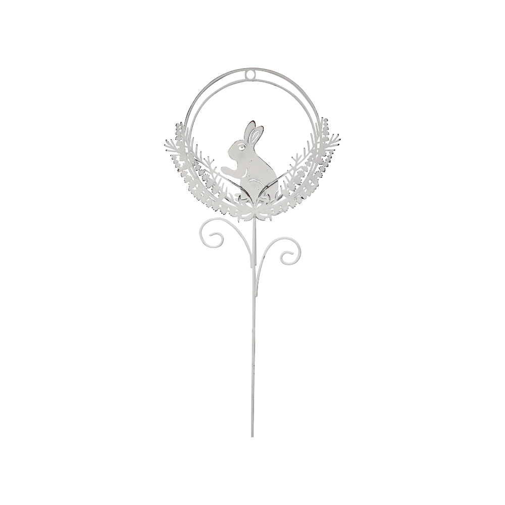 Add a delightful touch to any potted plant with the Pot Stake Rabbit/Wreath, a charming garden accessory. Made from durable metal, this stake showcases a whimsical rabbit surrounded by an intricate wreath design. Its elegant, colorless finish complements any décor, with dimensions of 51x13x0.2 cm. Retailers will find this blend of charm and sophistication appeals to customers looking to add a quaint and inviting flair to both indoor and outdoor greenery.
