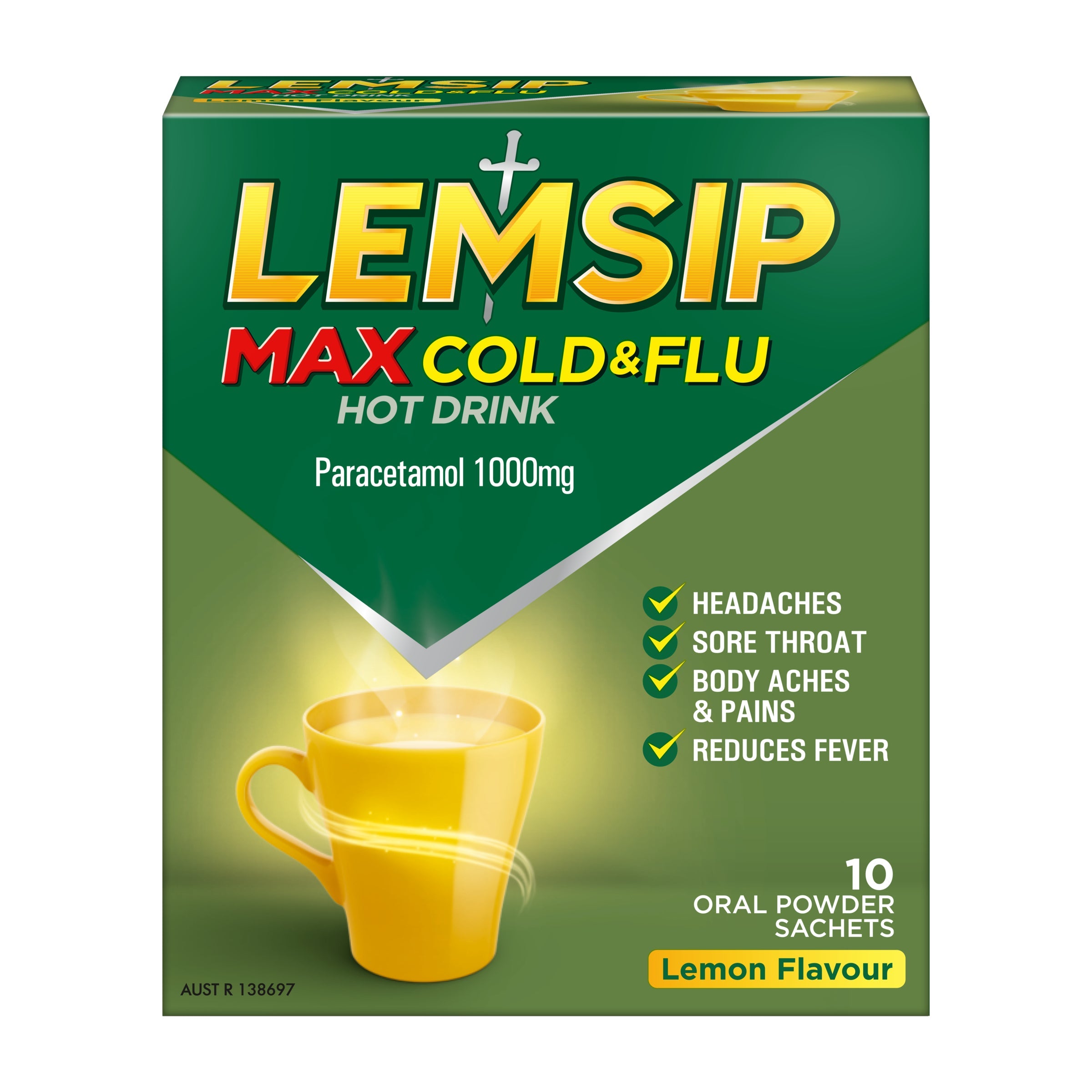 Lemsip Max Cold and Flu Hot Drink Lemon 10 Sachets contains twice the amount of paracetamol