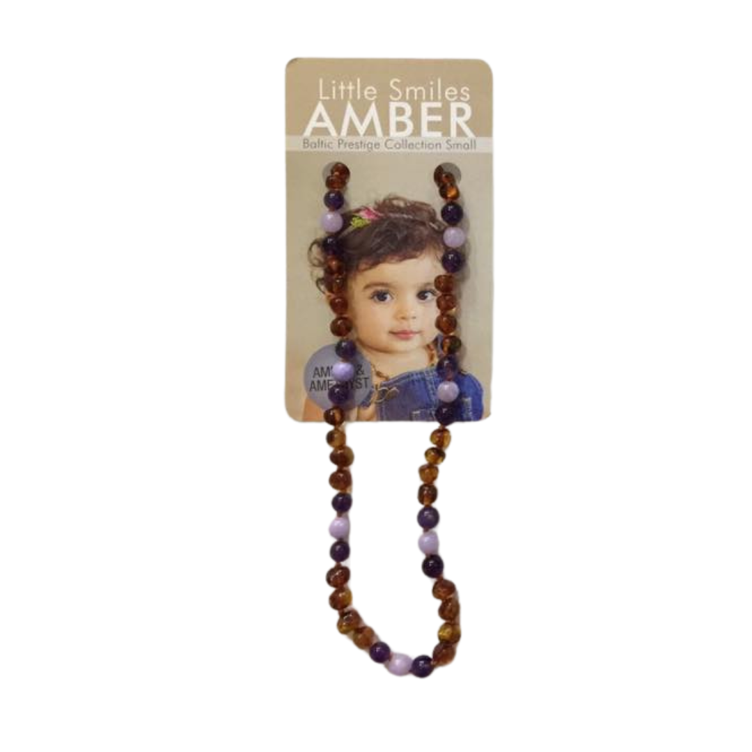 Amber beads are known to have anti-inflammatory and therapeutic properties which can help to relived symptoms on Teething. The Little Smiles Amber Necklaces is also suggested to promote fast healing and boost the immune sys-tem. This should aid in the reduction of acidity in the body, redness in the cheeks due to teething, swollen gums, nappy rash, and fevers.