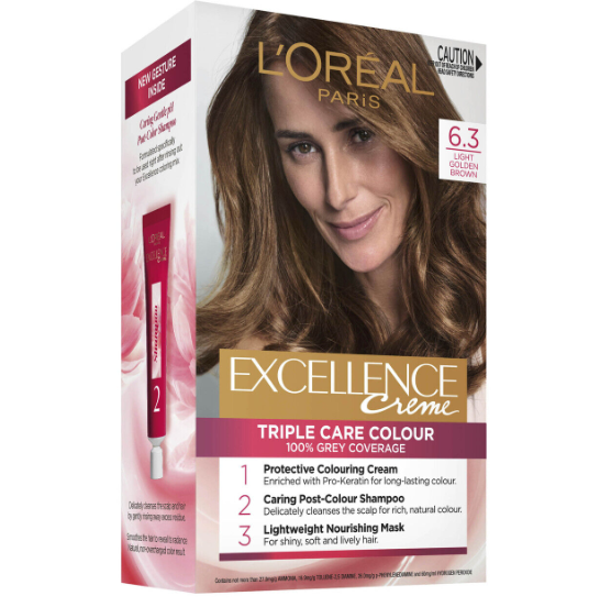 Colour with Respect.Respect as you Colour. Respect your Scalp. Respect your Hair.100% grey coverage from root to tip. L'Oreal Paris Excellence Cr me gives you a rich, deep, natural and even colour available in a wide spectrum of shades. Our reformulated 3 step system ensures your hair will be left with impeccable grey cover, superior strength and replenished like never before. The protective colouring cream is enriched with Pro-Keratin for long lasting colour and strengthens hair. The new caring post-colour shampoo delicately cleanses the scalp and balances your scalp pH level for less irritation. Complete yout routine with the new lightweight nourishing mask for shiny, soft and lively hair.