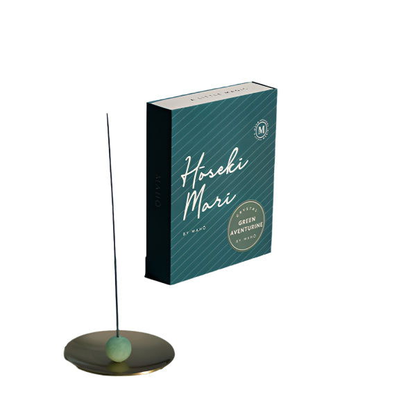 A hand-crafted solid brass dish paired with a polished, semi-precious Green Aventurine crystal creates the signature Hōseki Mari by MAHŌ—a ceremonial incense burner designed to awaken the senses and transform everyday rituals into moments of serenity and intention.
