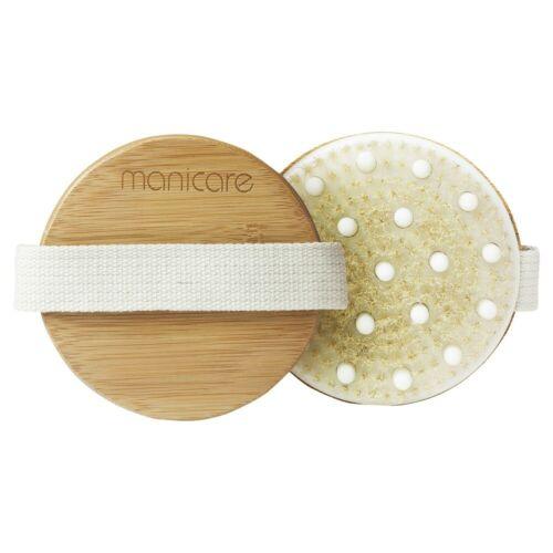 Manicare Dry Body Brush is a palm-sized dry body brush that helps to reduce cellulite for smoother, softer skin. The dry body brush assists in stimulating and increasing blood circulation, while exfoliating dry skin and promoting skin elasticity. The brush is best used before showering with long, upward circular movements, brushing towards the heart. Brush for three to five minutes until skin becomes slightly rosy. Clean the brush with soapy water after each use and leave to dry.