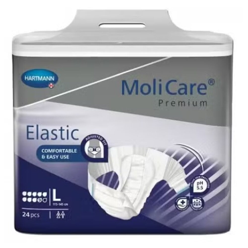 An all-in-one slip style pad for moderate to very severe incontinence, suitable for all body shapes. MoliCare Premium Elastic is self explanatory and quick and easy to apply with only 2 elasticated side panels and 2 re-closable tapes.