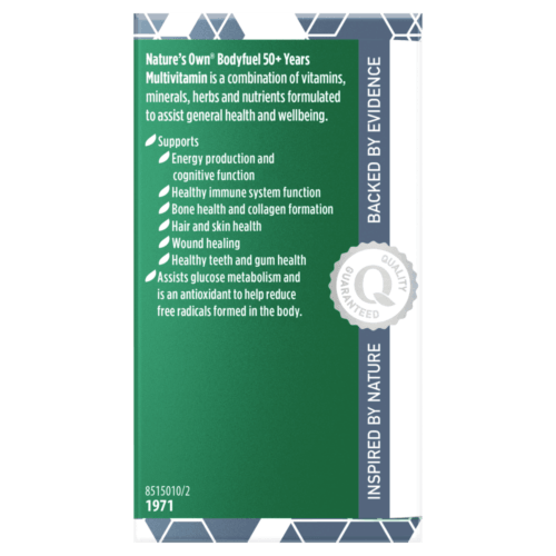 Nature's Own® Bodyfuel 50+ Years Multivitamin is a combination of vitamins, minerals, herbs and nutrients formulated to assist general health and wellbeing.