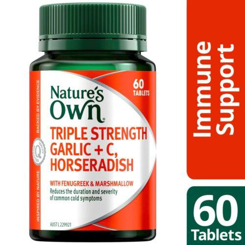 Natures Own Triple Strength Garlic Plus C Horseradish 60 Tablets Nature's Own Natures Own Triple Strength Garlic Plus C Horseradish 60 Tablets Nature's Own Product form $21.00 In Stock—Ready to Ship Quantity Add to cart Safe and Secure Shopping Shipped today? Order within: Nov 02, 2025 10:00:00 +1100 Dispatch within 24 Hours
