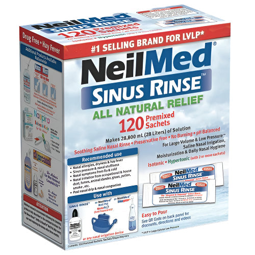 NeilMed Sinus Rinse Sachets can be used with Sinus Rinse bottle, Neti Pot or Sinugator. NeilMed Sinus Rinse provides a natural soothing saline wash to keep nasal passages clean.