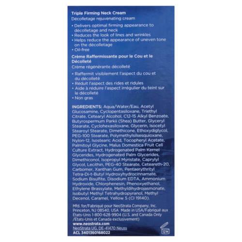 Neostrata Skin Active Triple Firming Neck Cream, this anti-ageing neck cream is formulated with three key ingredients, each with a unique action to deliver a lifted and firmer appearance. NeoGlucosamine, Neocitriate and Pro-Amino Acid work together to firm the appearance of sagging skin. This potent cream is enriched with a restorative fruit stem cell extract.