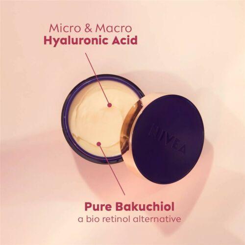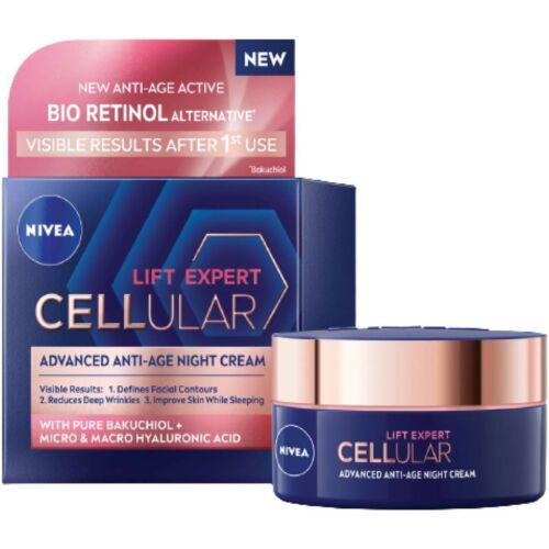 NIVEA Cellular Expert Lift Advanced Anti-Age Night Cream - the science of younger looking skin. A younger-looking skin is a visible reflection of cellular activity. Our advanced face cream formula features a combination of powerful anti-age actives that works to reveal beautiful & younger looking skin. PURE BAKUCHIOL to help visibly improves skin density and to strengthen skin's structure. MICRO & MACRO HYALURONIC ACID, two anti-age must haves, known to hydrate, smooth and help visibly reduce wrinkles. Apply daily on cleansed face, avoiding direct eye contact. For extra care overnight apply a thicker layer of the cream and let it melt with your skin.