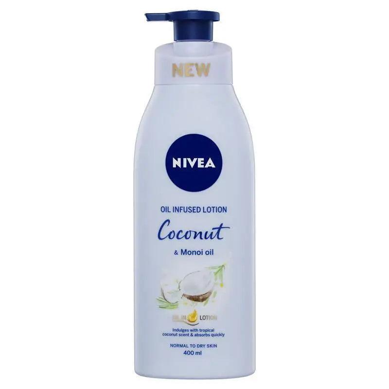 NIVEA Oil in Lotion Coconut & Monoi Oil has been developed with your normal to dry skin in mind. The formula with precious Monoi Oil has been carefully blended into a fast-absorbing lotion. Awaken your senses with a delicate coconut scent and deeply moisturise your skin without greasy residue. This oil in lotion smoothes your skin, leaving it nourished and moisturised for over 24 hours. The ingredients for this lotion have been carefully selected according to strict quality standards – the skin compatibility has been dermatologically approved. This product comes in a practical pump bottle for easy usage.