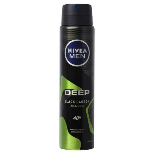 NIVEA MEN DEEP Amazonia Anti-Perspirant Aerosol Deodorant protects your skin from sweat and bacteria for a long-lasting dryness and a clean skin feel, as if you’ve just stepped out of the shower. The effective anti-bacterial formula, with black carbon, acts powerfully without leaving any black residue and is complemented by a modern and masculine fragrance. NIVEA MEN Deep Amazonia Anti-Perspirant Aerosol Deodorant has reliable 48 hour protection so you can feel fresher for longer. Get the reliable protection and care that you deserve! The skin tolerance of this anti-perspirant has been dermatologically proven.
