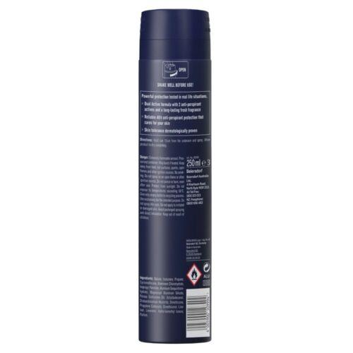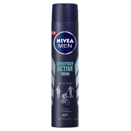 NIVEA MEN Everyday Active Aerosol with two anti-perspirant actives for powerful protection tested in real life situations. 48H reliable anti-perspirant protection that cares for your skin. Enjoy protection from sweat and bacteria with a masculine scent and feel fresher for longer.