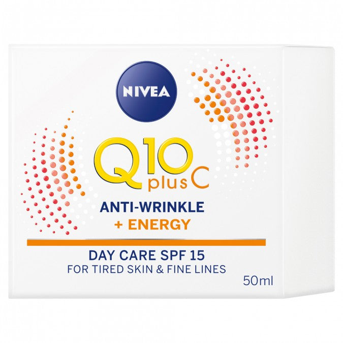 With regular use, this formula supports skin's own Q10 and Creatine, effectively fights fine lines and reduces their appearance. The revitalising formula with Goji Berry Extract immediately awakens the skin for a fresh and radiant look. SPF15 and UVA protection help to protect skin against sun-induced wrinkle formation. NIVEA Q10 Plus Anti-Wrinkle Energising Day Cream contains the skin's own actives Q10 and Creatine and works effectively against fine lines - in harmony with your skin.