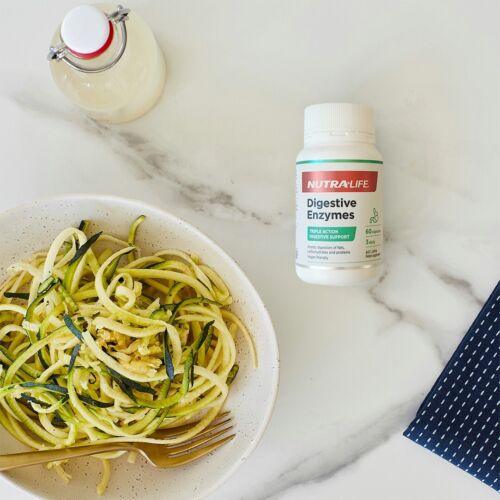 This triple action formula utilises a combination of 6 enzymes and warming herbs to support the body in breaking down macronutrients as well as the lactose in dairy. Taken regularly, Nutra-Life Digestive Enzymes may help to: