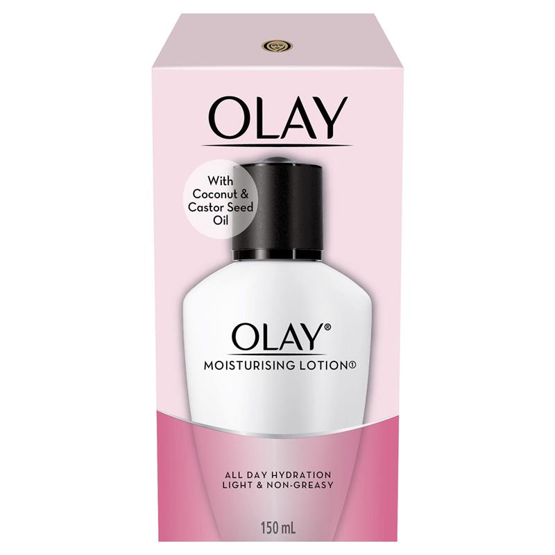 Olay moisturising lotion hydrates with coconut oil for normal/combination skin. The moisturiser hydrates and repairs to give you timeless, beautiful skin for life. Light & non greasy formulation with coconut and castor seed oil for all day hydration.