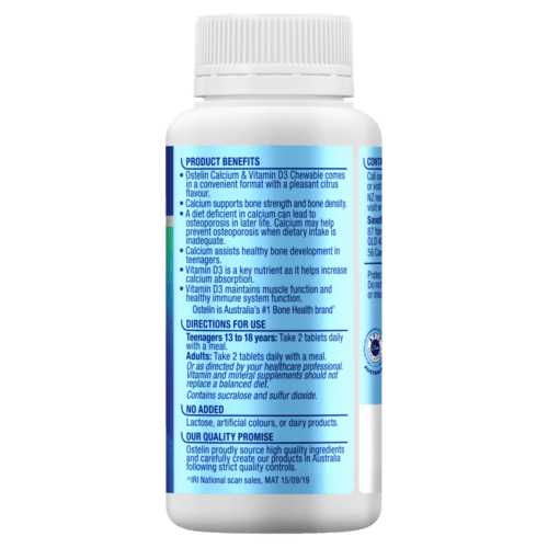 Ostelin Calcium & Vitamin D3 Chewable 60 Tablets Ostelin Ostelin Calcium & Vitamin D3 Chewable 60 Tablets Ostelin Product form $21.00 In Stock—Ready to Ship Quantity Add to cart Safe and Secure Shopping Shipped today? Order within: Oct 27, 2025 10:00:00 +1100 Dispatch within 24 Hours