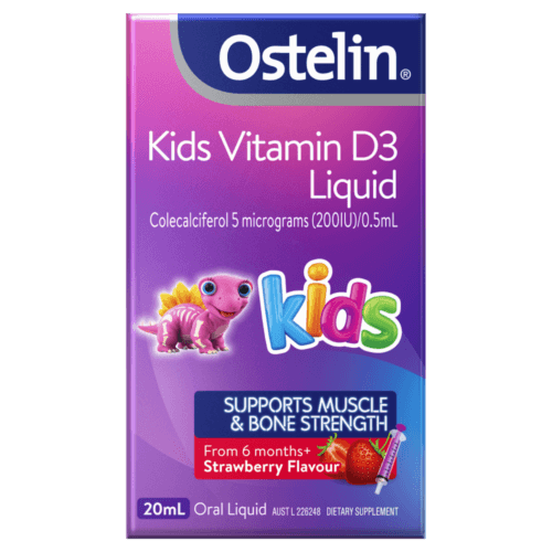 Ostelin Kids Vitamin D3 Liquid provides a tailored dose of vitamin D3 and comes in a pleasant strawberry flavour that kids enjoy. This product is suitable for maintaining adequate vitamin D levels in children aged 6+ months and may assist in the prevention of vitamin D deficiency when dietary intake is inadequate. Each small 0.5mL dose provides 200IU of vitamin D3 (Colecalciferol 5 micrograms), the form naturally found in the body, blended with premium quality fractionated coconut oil. It contains no added sugar and no artificial colours, flavours or preservatives. It also comes with a measuring dispenser for accurate dosing.