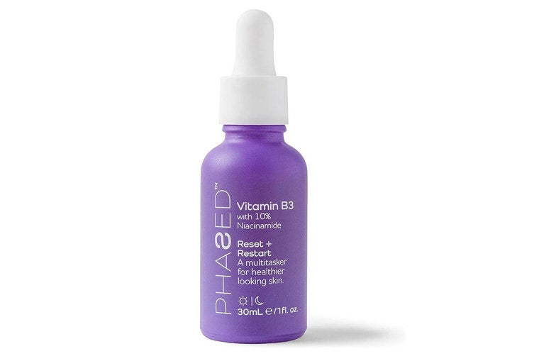 Vitamin B3 with 10% Niacinamide Reset + Restart a multitasker for healthier looking skin. Reset and Restart your skin with Phased Vitamin B3 Serum. A multitasking serum that helps boost skin’s immunity and overall health. Give your skin a boost to reveal a healthier, more radiant, clearer complexion. Phased Vitamin B3 with 10% Niacinamide Serum contains active ingredients clinically proven to help target and prevent an array of skin concerns. Perfect for all skin’s looking to improve overall skin health, texture, tone, appearance of enlarged pores and congestion.