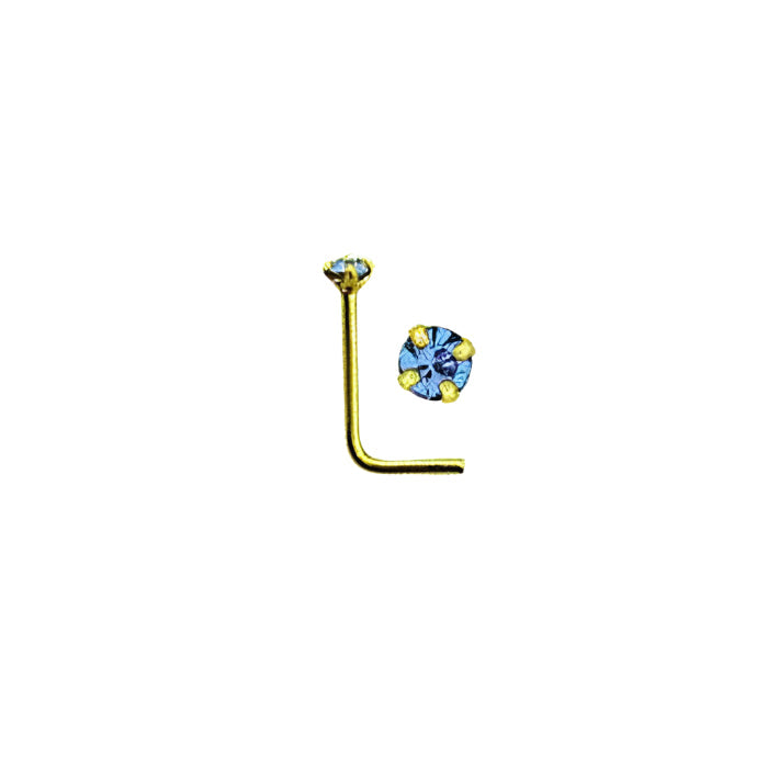 Rossan Bent Post Gold Plated Jewelled Nose Studs NS5096 Aquamarine