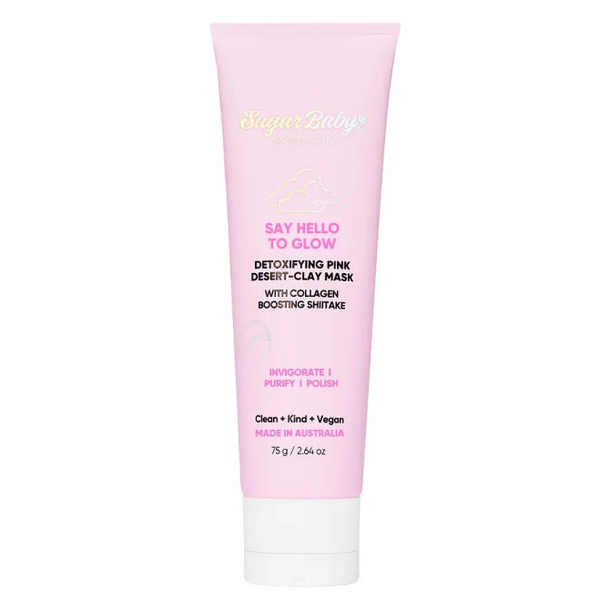 SugarBaby Say Hello To Glow Detoxifying Pink Desert-Clay Mask With Collagen Boosting Shitake 75g