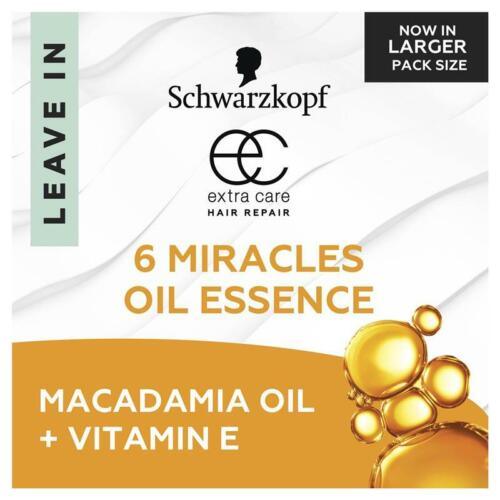Extra Care 6 Miracles Oil Essence with Macadamia Oil and Vitamin E offers 6 dimensions of hair recovery:1. INTENSIVE CARE and REPAIR2. HEAT PROTECTION when blow-drying3. SPLIT ENDS REDUCTION and more RESISTANCE4. WEIGHTLESS TOUCH and soft feel5. CONTROL of frizzy hair and fly-aways6. LUXURIOUS SHINE and suppleness Luxuriously beautiful hair.Made in Australia.Bottle made from 100% recycled plastic. 100% Recyclable via TerraCycle. Visit TerraCycle.com for more details.