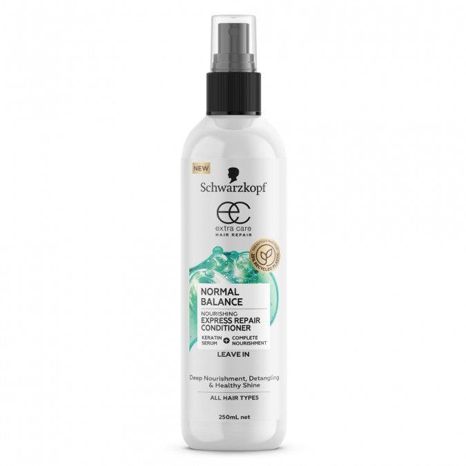 Schwarzkopf Extra Care Normal Balance Conditioner provides deep nourishment, immediate detangling and healthy shine for all hair types. 25% larger size (in comparison Extra Care Normal Balance Leave in Conditioner 250mL) Extra Care Normal Balance Express Repair Leave-In Conditioner Even normal hair requires a dose of nourishment to keep it healthy and full of shine.